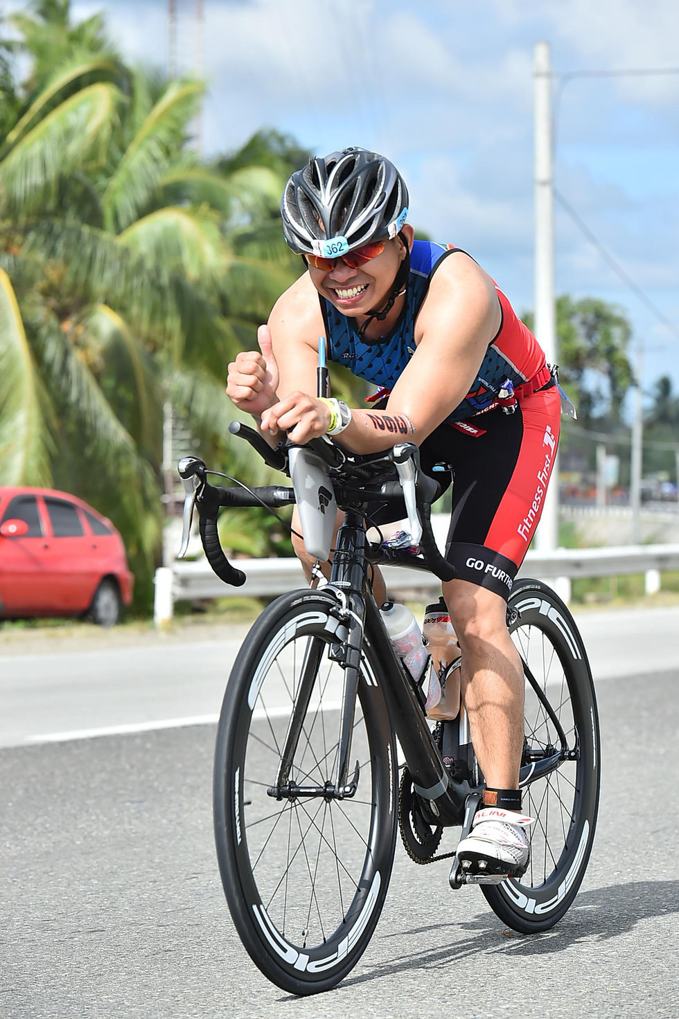 At the transition, I washed my face with water put the race belt, sunglasses, helmet then run with the bike out. I clipped my bike shoes already and I did it like a pro thanks to experienced, the first 5 km was an easy spin with 30-35kph pace, I passed a lot of participants, from the transition area to the turning point at 45km the crowd are amazing from both sides of the road, I enjoyed waving the crowd like a celebrity as whenever I raised my hand they were shouting and cheering they were hungry for attention.